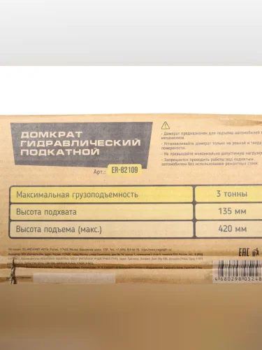 | Наименование | Домкрат подкатной 3т 135-420мм ЭВРИКА ЭВРИКА er-82109 в Верхней Пышме Свердловской области |