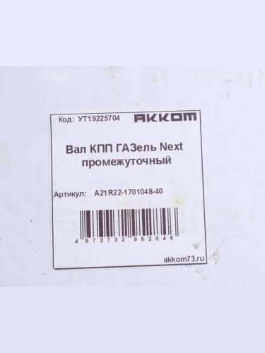 | Наименование | Вал КПП ГАЗель Next промежуточный z=35 АККОМ АККОМ а21r22-1701048-40 в Верхней Пышме Свердловской области |