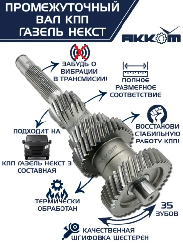 Вал КПП ГАЗель Next промежуточный z=35 АККОМ АККОМ а21r22-1701048-40 в Верхней Пышме Свердловской области